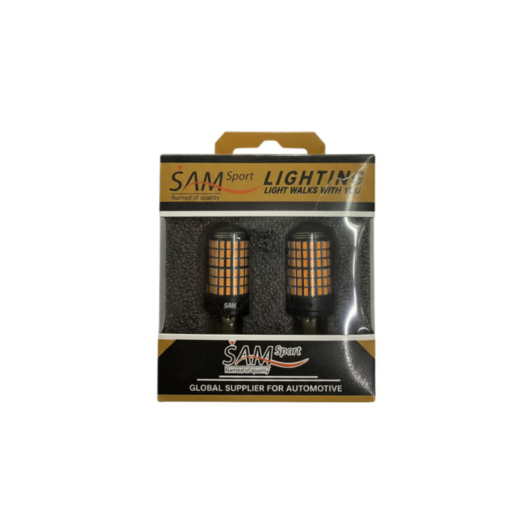 خرید لامپ 144 چیپ LED نارنجی سام اسپورت (SAM Sport) با پایه کنتاکت، نوردهی قوی و شفاف، طول عمر بالا، مصرف کم و مقاومت عالی. مناسب چراغ راهنما، هشدار و علائم ایمنی خودرو.